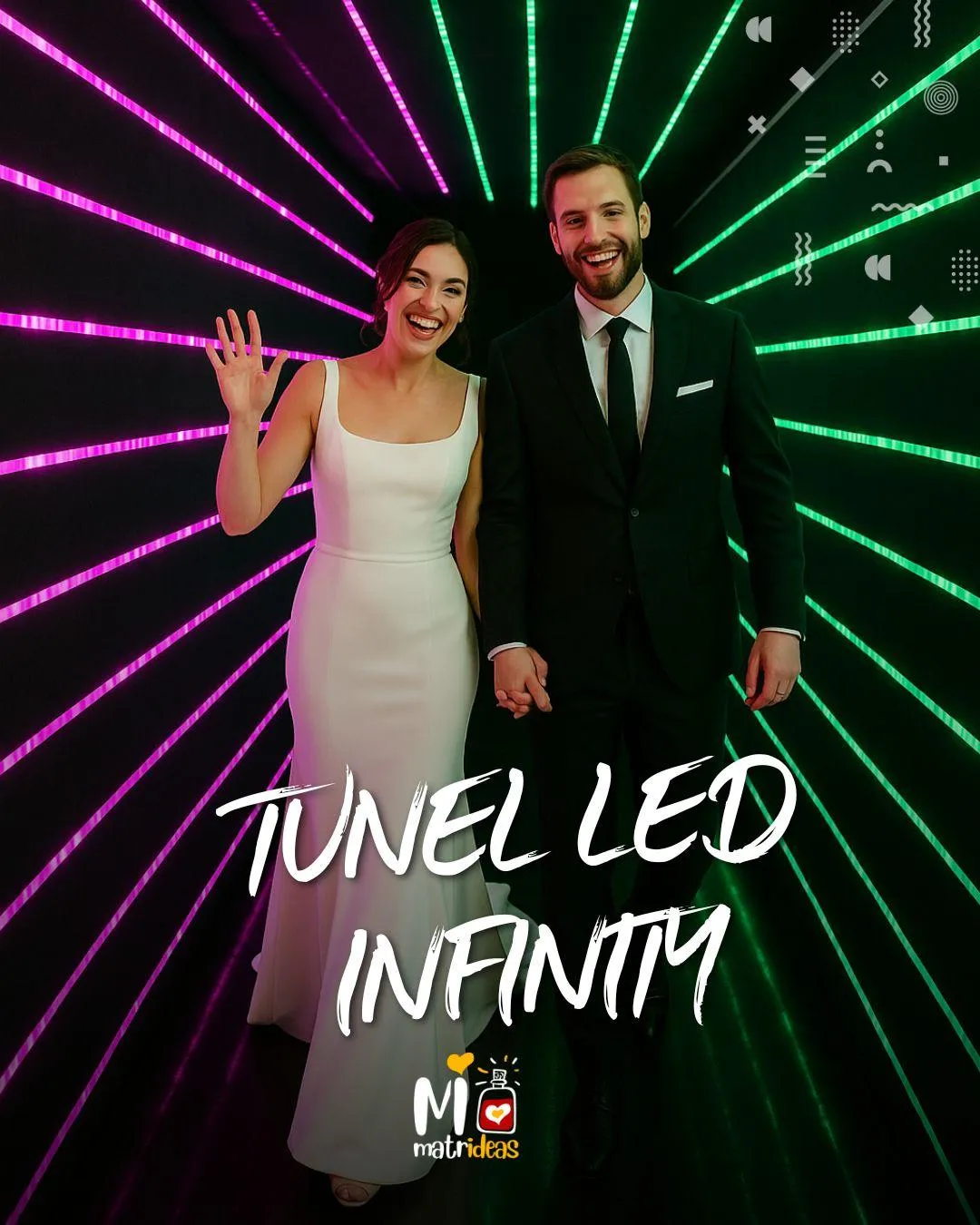 Con el Túnel LED Infinity de MATRIDEAS no pasa eso. Creamos un rincón que parece sacado del futuro, donde tus invitados se detienen, se lucen y se llevan contenido que realmente vale la pena guardar (y subir a redes 😎).